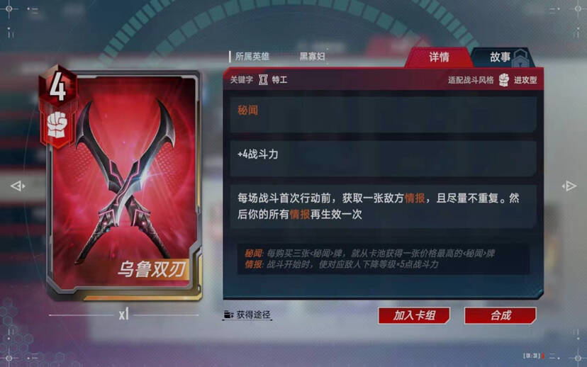 红寡妇的存在,让【隐匿寡妇流】这个速五本的卡组在前期和中期变的很有强度,至少前期不会**了。配合红寡妇和携手破敌技能使用,简直不要太强。