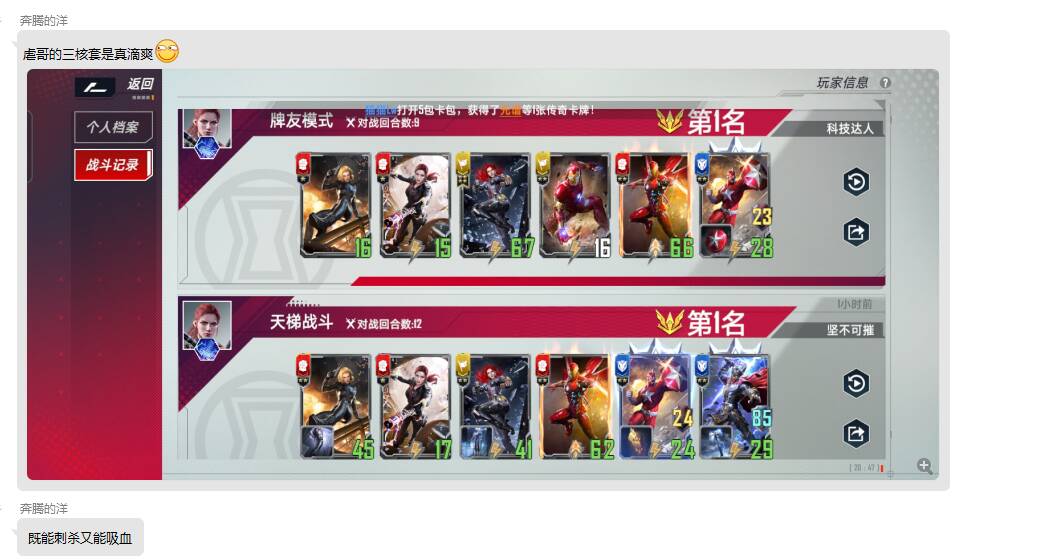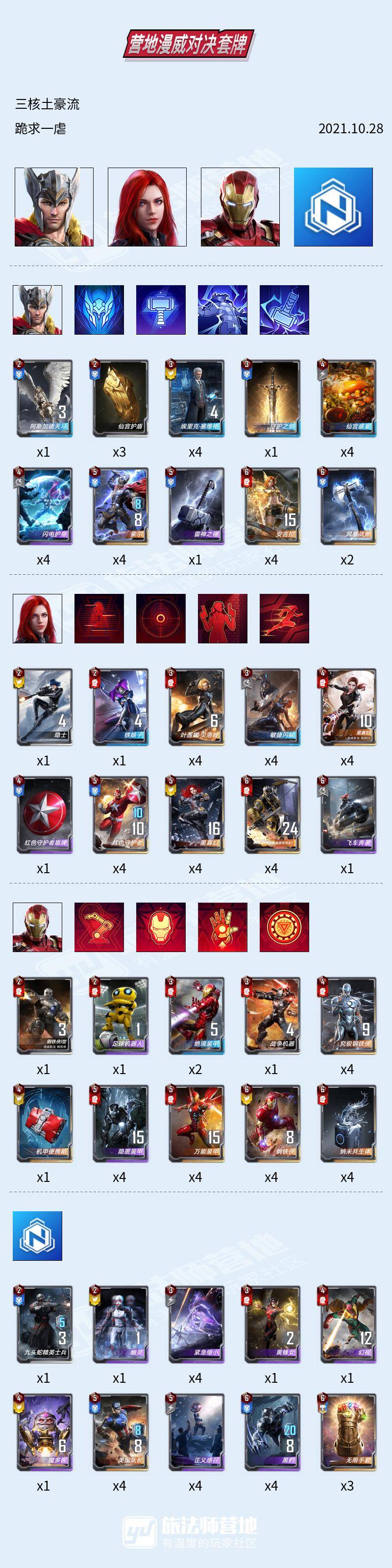 以上卡组实际上都是单核卡组,叠甲复仇者重要的是索尔,万能刺杀流最重要的是万能,隐匿寡妇流最重要的是黑寡妇,万一这几个卡组的核心来的晚,卡组的强度就会打折扣,所以【土豪流】把这三种卡组结合起来,本卡组强度是高于以上三种任意一种单核卡组的,