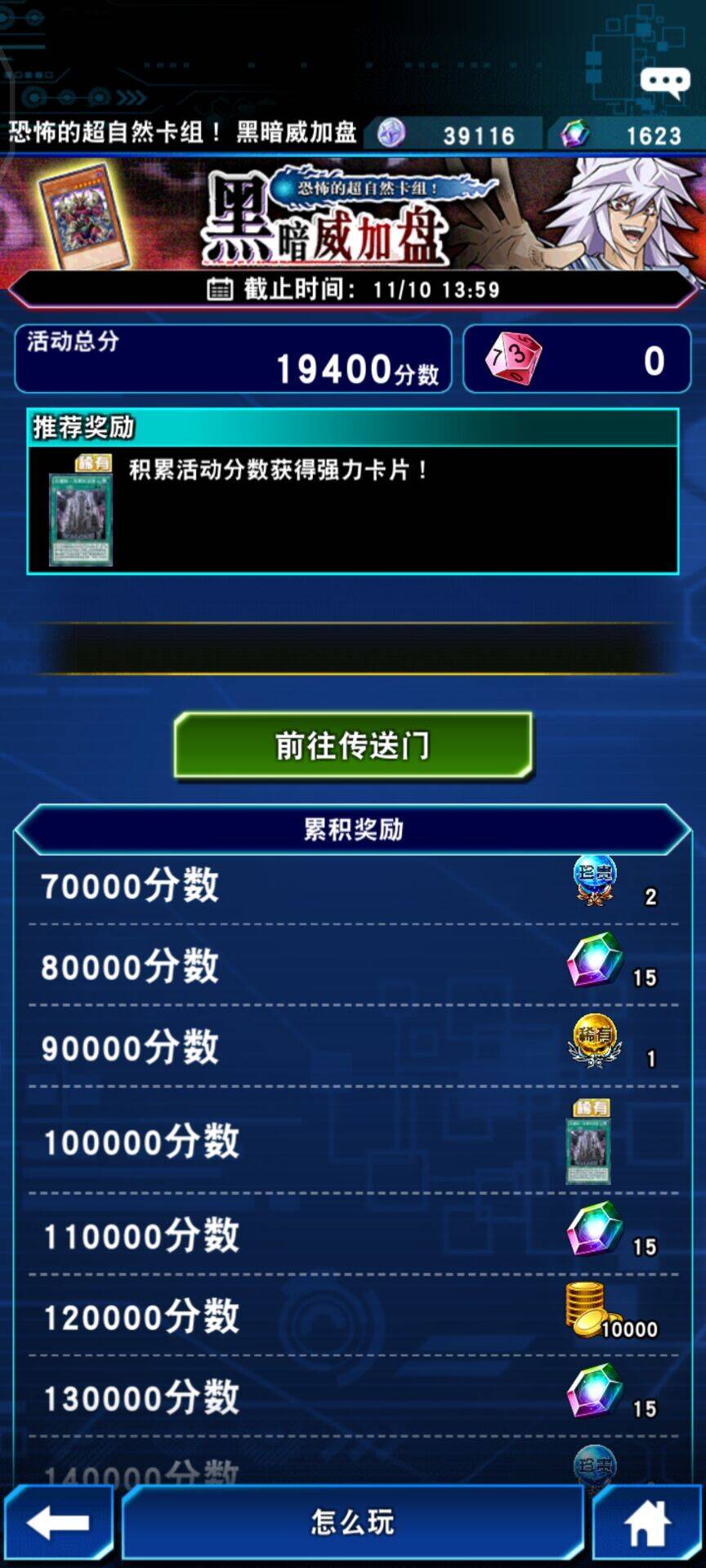 与决斗世界中的角色进行决斗获得“十面骰子”,收集一定数量的“十面骰子”即可与“暗貘良”进行决斗,通过决斗将有机会获得超凡卡「恶魔的将星」、稀有卡「伏魔殿-恶魔的迷宫-」「地狱女帝恶魔」以及宝石、金币等奖励,赢得决斗增加积分,还可解锁“暗貘良”的角色使用权!