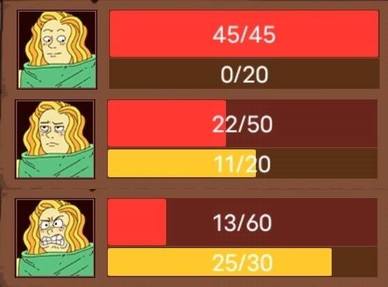 一个是冒险者的头像会随着生命值降低而改变,一共三档。你看这个发际线很高的战士,从一开始的云淡风轻,再到后面的表情逐渐苦涩,最后快死的时候脸上根本绷不住,玩的时候偶然发现觉得很有趣~