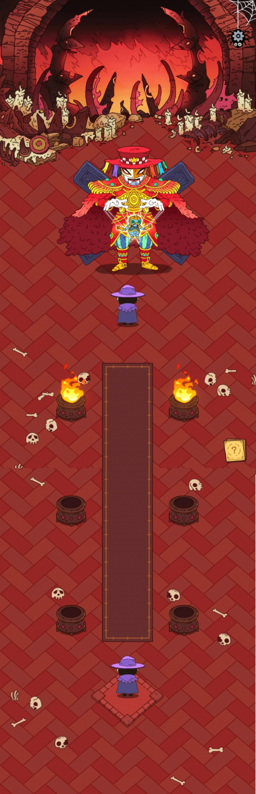 再就是最后打关底BOSS的体验,其他地区都有着不一样的视觉风格,要一个一个房间打过去,在最后遇到关底BOSS的时候只有一条猩红的红毯,还有两侧不祥的火炬,向前走去,身形巨大的怪物领主等在深处,遍地白骨的大殿里,只有勇者孤身一人迎着恐怖走向身形巨大的魔王,虽然只有一关,决战的感觉还是非常到位的。
