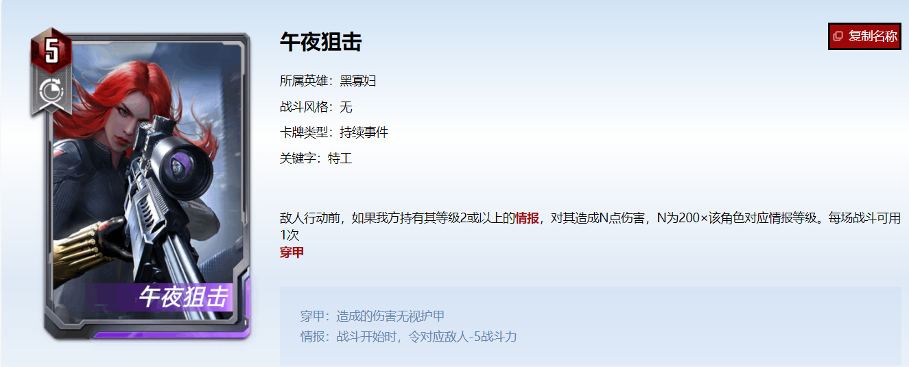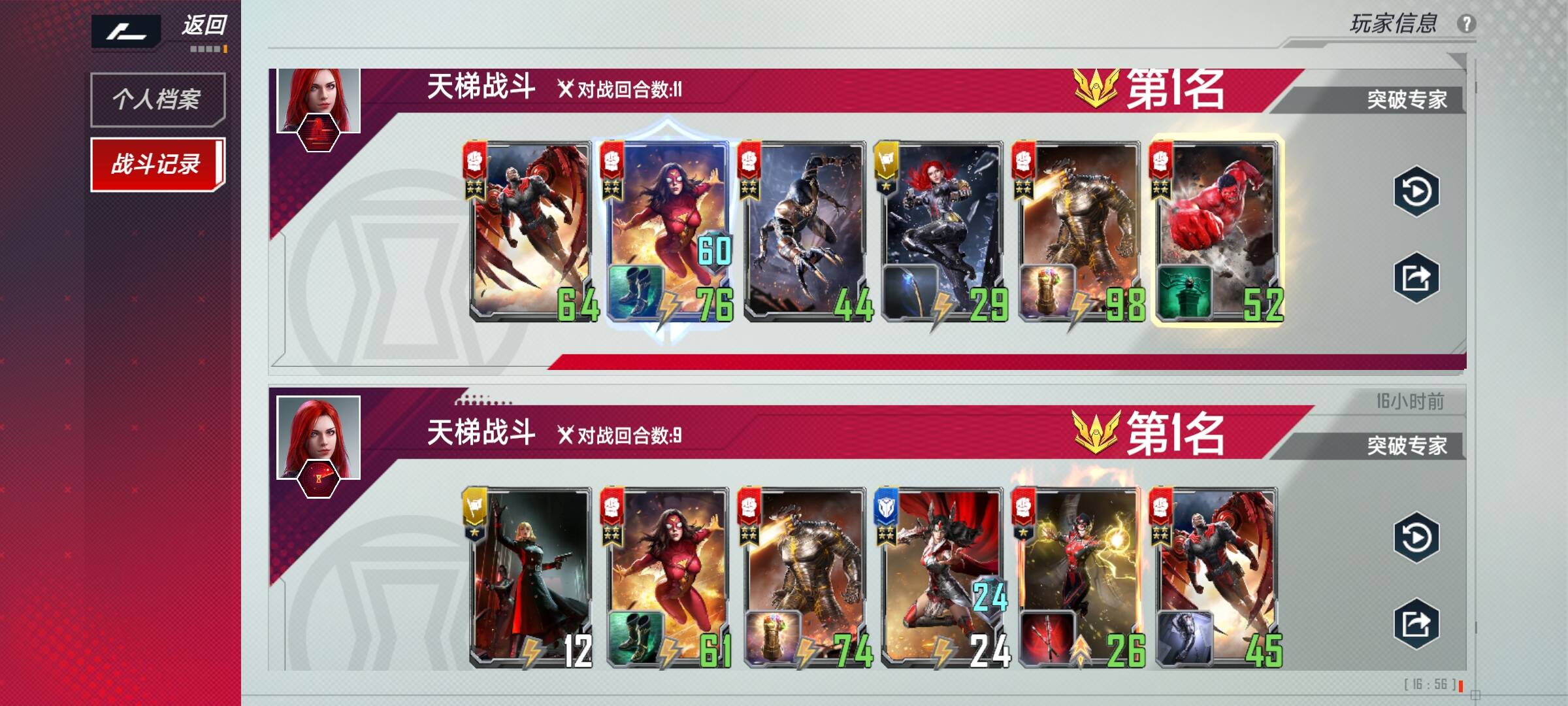 其次,寡姐的3费橙卡叶莲娜和3费以上的卡牌都是可以替换的(除了午夜狙击和间谍舞会),从我发的战绩截图里可以看到,叶莲娜并没有进入决战阵容,因为我叶莲娜并没有4张,所以这张卡不满4张的话,能起到一个检索事件的作用就已经足够了。