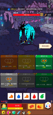 随机事件、各有效果的装备和BUFF、不确定的手牌卡组,以及种类繁多的怪物,构成了这个游戏的地牢,使得每一局都能有不同的体验。个人认为在rougelike的游戏性上,骰子元素师是合格的。