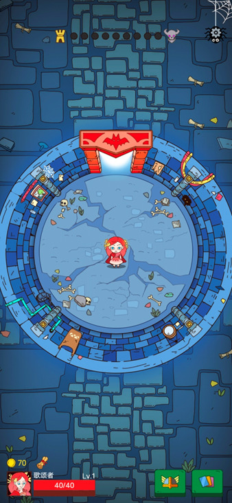 游戏采用随机地牢的游戏方式,每次开始新游戏,都会生成随机遇敌顺序的地牢。游戏中的Roguelike元素,除了随机地牢之外,主要体现在手牌、装备、状态、事件上,这些元素是不能被带出地牢的,只能在当前地牢中生效。没错,除了每次开局固定自带的几张手牌之外,大部分手牌都是在地牢中随机获取的,并且不能被带出地牢。如上文所述,不同的卡牌有不同的需求,如何拿到一套流畅而不卡手的卡组就是通关地牢的关键。