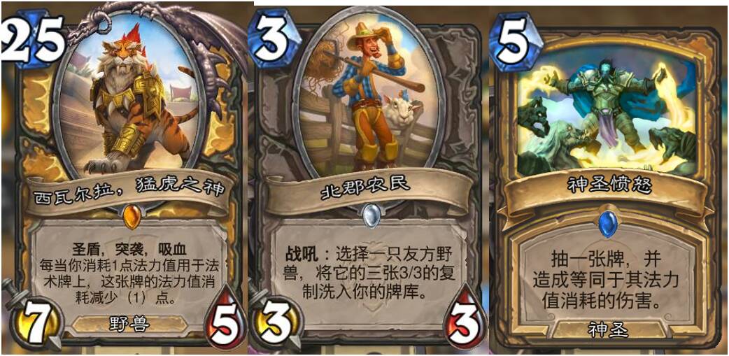现在有了北郡农民,就可以轻松的配合了。甚至可以挂在封印骑里面(只需要保证卡组法术打完猛虎是2费以下即可)