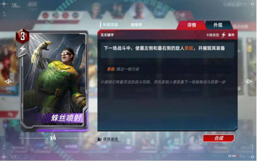 【3】、如果自己的洛基和大宗师没有武器,点对手头像看对手大概率没有蚁人的话,可以不用蛛丝喷射,给手里常备一个就行了。