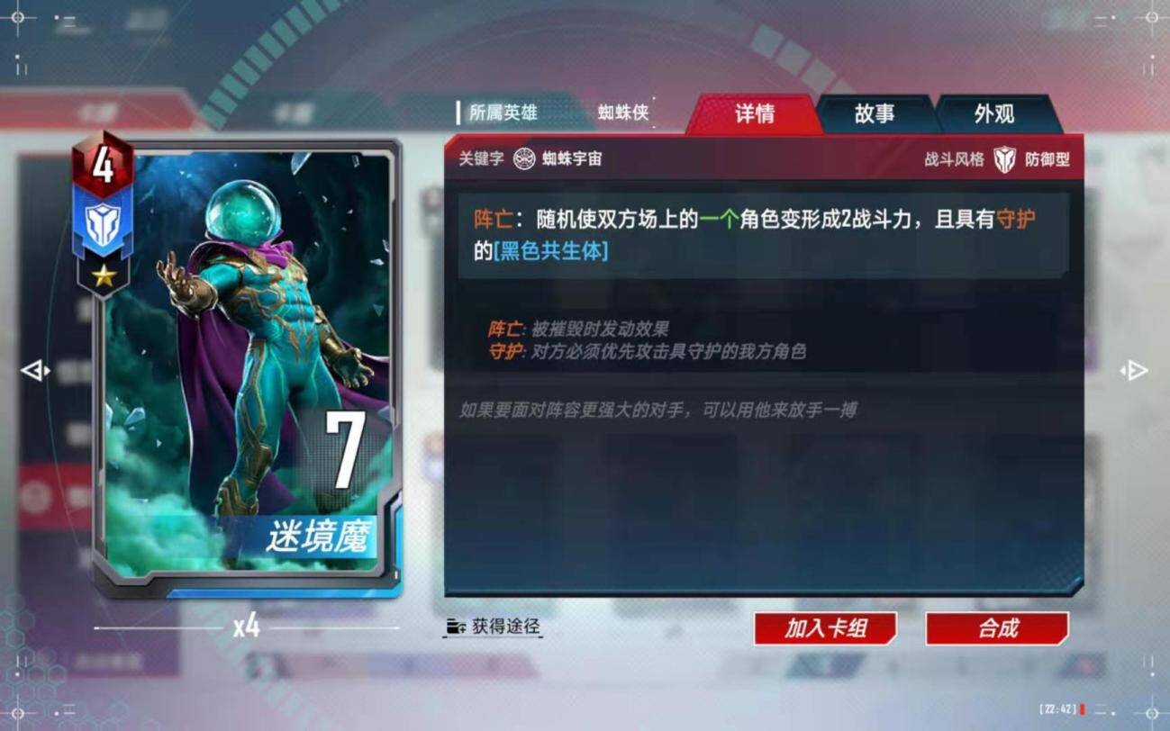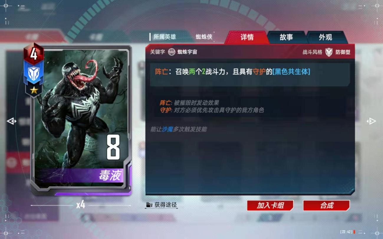 带这两张卡实在是因为蜘蛛侠四费没有武器和事件可以填充垃圾卡组,好歹可以在“神力注入”和“共生进化”的减费效果下直接过滤。