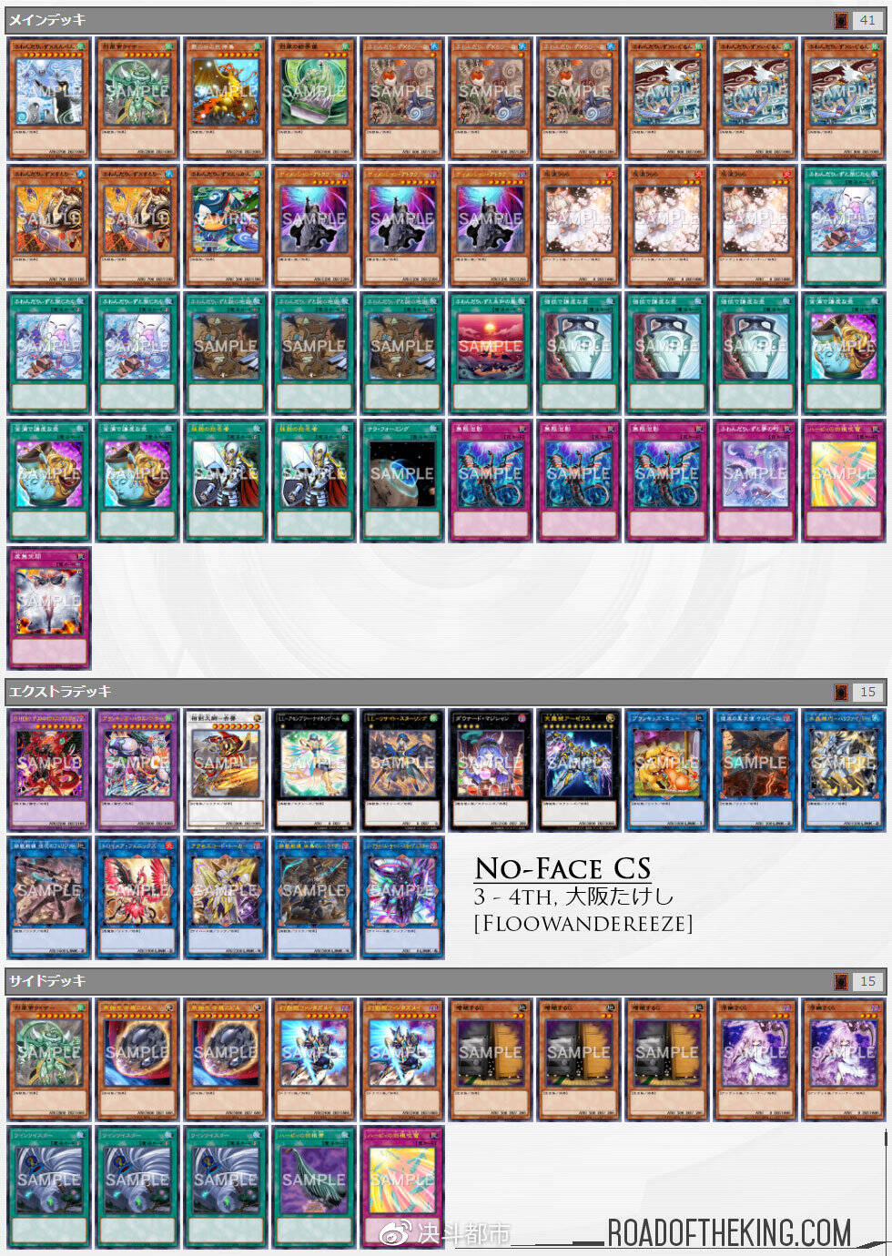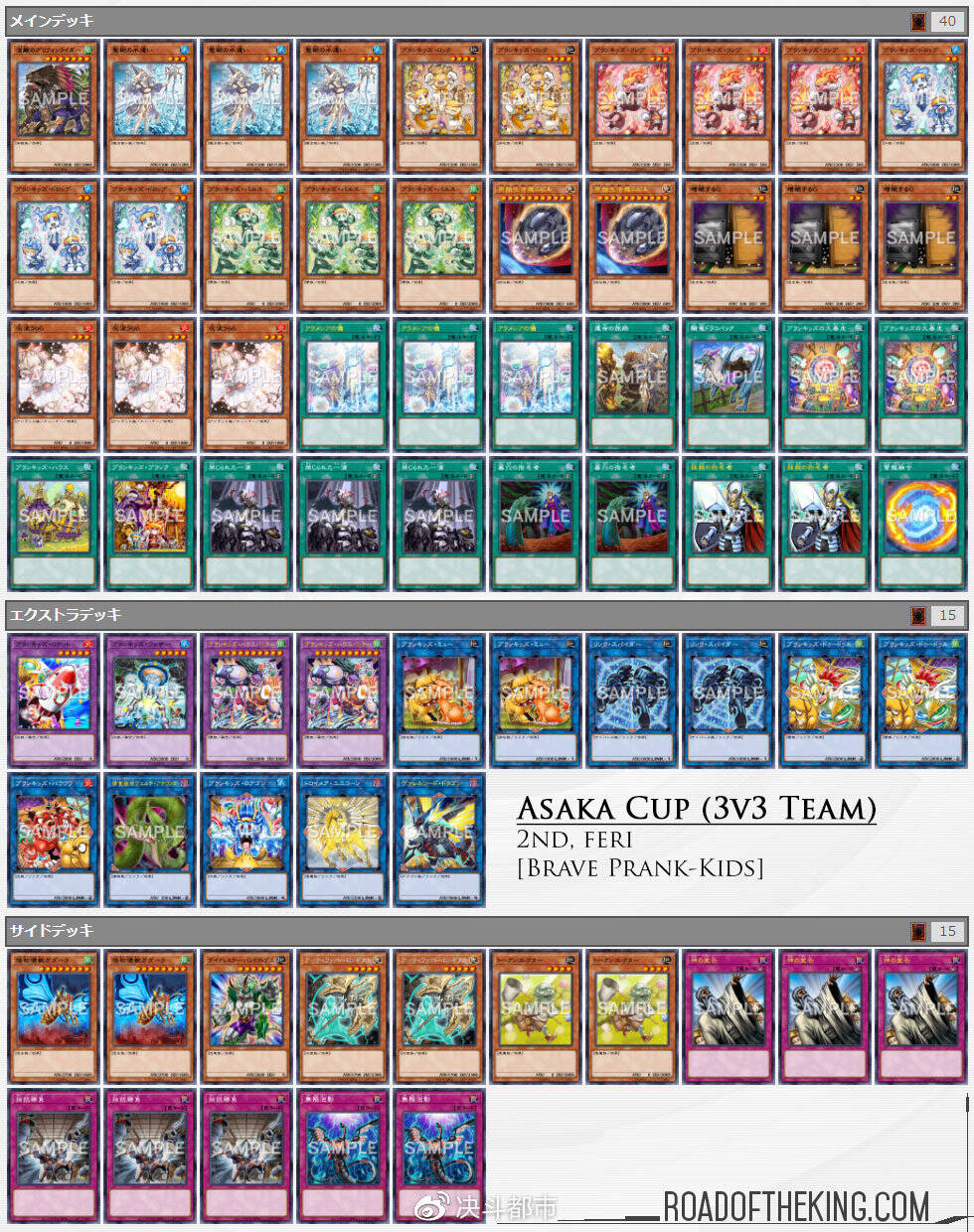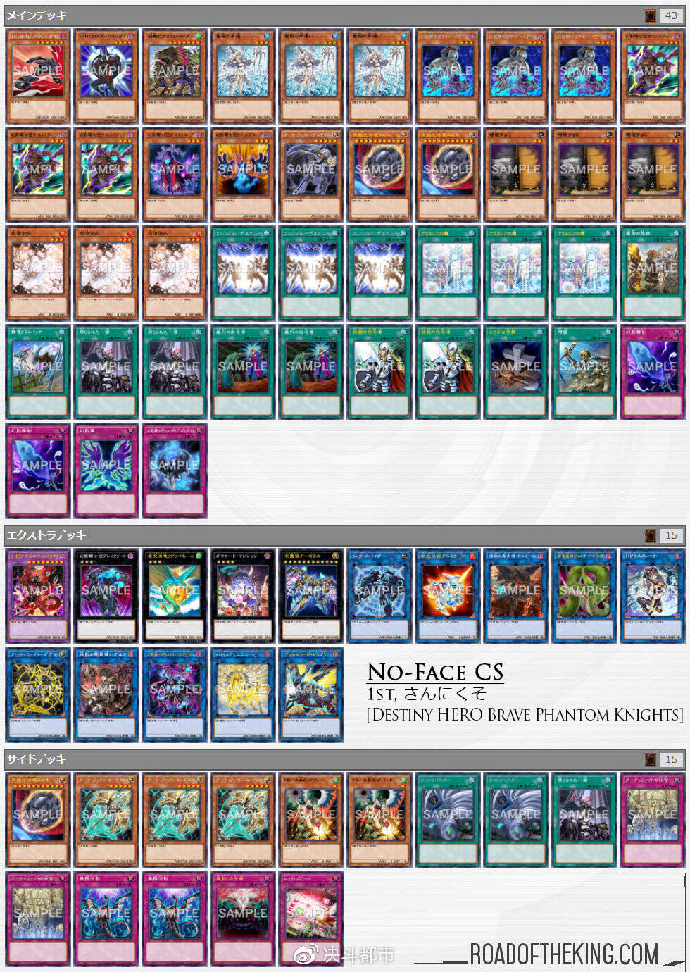 他的卡组构筑是主要针对命运英雄勇者魅影骑士团。“群雄割据”和“御前比试”可以把对手卡住在地属性天使族的“勇者衍生物”。副卡组的“熔岩魔神・岩浆魔像”和“火山性女王”在后攻时可以用来解掉“命运英雄 毁灭凤凰人”和“流离的狮鹫骑手”。