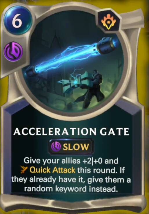 升级条件:己方施放两个6+消耗的法术。升级时,生成一张加速之门置入手牌。