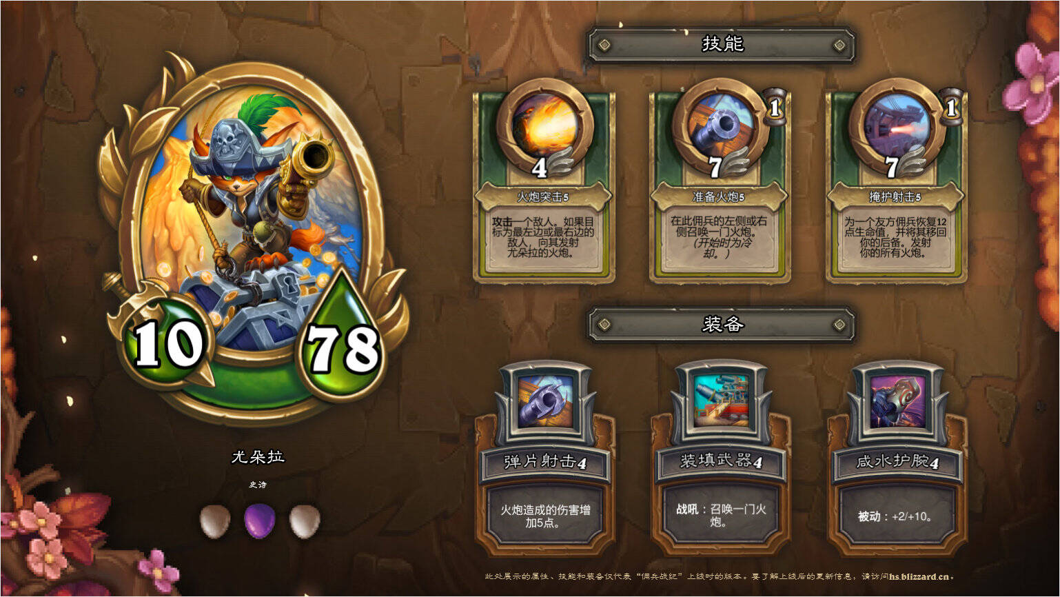 - 曲奇下厨5:自然,5速,冷却1。使所有敌人流血(5)。为友方鱼人和海盗恢复5点生命值。