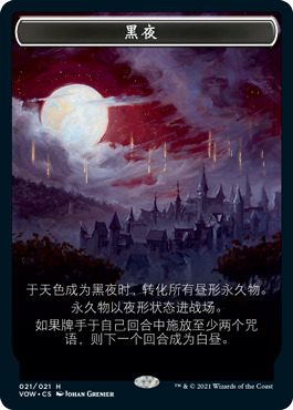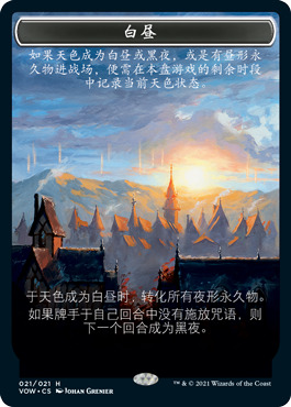 只要当前是白昼,则具昼形与夜形异能的双面牌进战场时均是昼形面朝上。只要当前是黑夜,则上述的牌进战场时均是夜形面朝上。