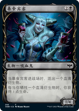 最后一个复出机制是榨取,这一触发式异能初看感觉并不属于这个世界,但细品后感觉回归本源。焦点或许都在吸血鬼身上,但别忘了狼人依然在转化、人类依然在战斗,而灵俑也依然还在这里,依然同样饥饿。