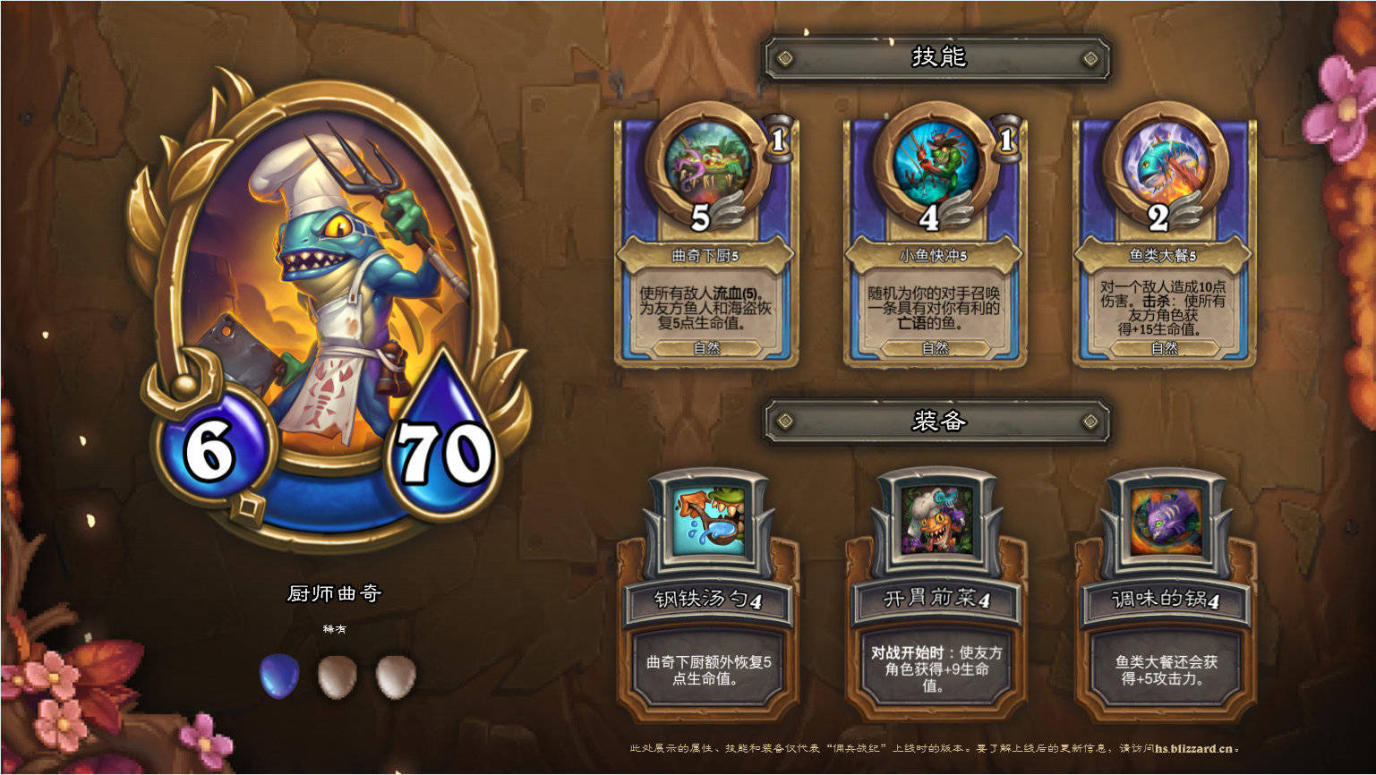 - (4级)曲奇下厨额外为友方鱼人和海盗恢复5点生命值。