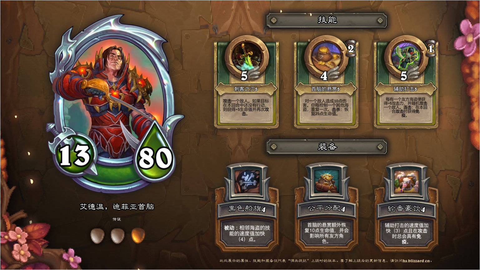 艾德温作为唯一的传说海盗,技能/装备都基本与海盗队绑定,13/80的属性值很踏实。