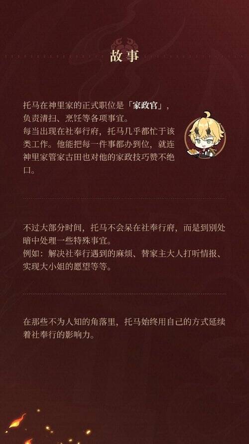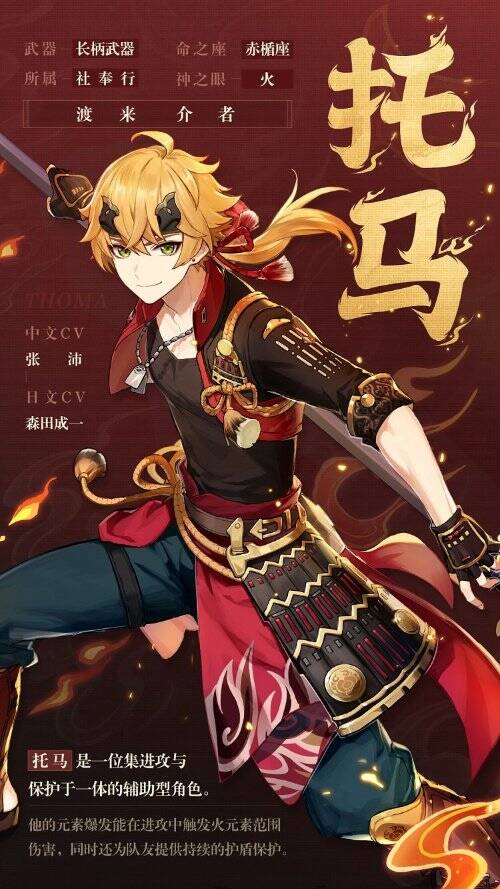 蒙德出身的托马现居稻妻,他既是社奉行神里家的家政官,也是活跃在稻妻的「地头蛇」。