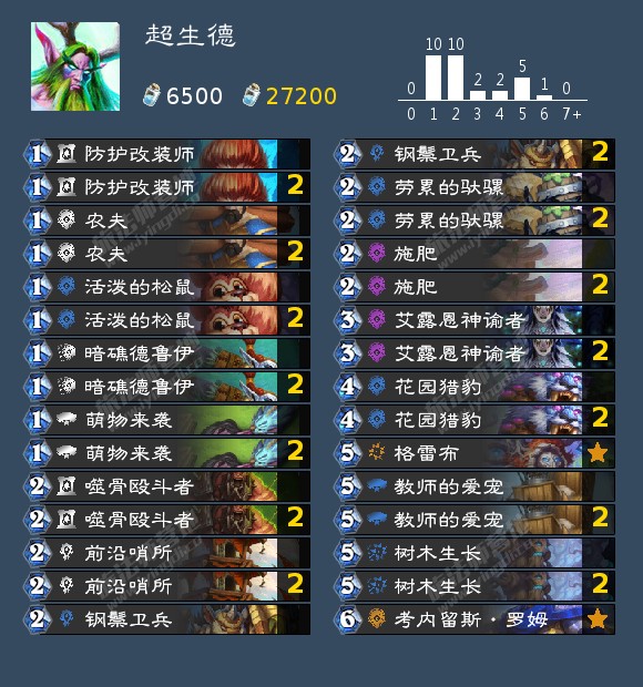 用前期的嘲讽、小松鼠和农夫压垮对手!通过强大的衍生物配合一往无前,最后靠树木生长锁定胜局!包含总计30张卡牌,其中30张可分解:2张传说卡牌,4张史诗卡牌,12张稀有卡牌,12张普通卡牌。