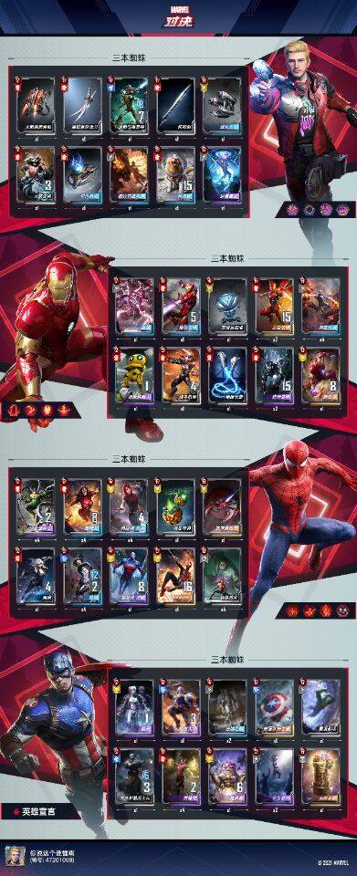 这里虽然我带了美队盾,万能机甲,迈尔斯,钢铁侠和滑翔翼4张橙卡,但是实际上本卡组的硬性要求就只需要迈尔斯一张橙卡,其他橙卡都只是为了打针对和吃鸡所用,没有也不会影响对局体验。