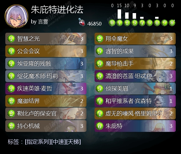 智慧之光可以触发绽花魔术师·玛莉的自动进化效果,也能利用多余费用过牌。由于已经具备足够高的上限,目前的进化法普遍都会投入这张能提升稳定性的组件。