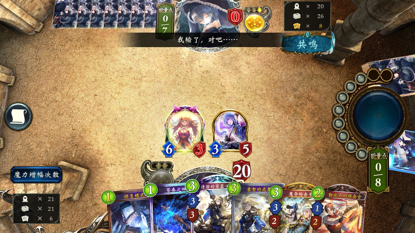 寻找合适时机使用魔御结界,防备对手的直伤斩杀和伤害解场。在魔御不重要的对局中,可以用它触发玛莉效果。