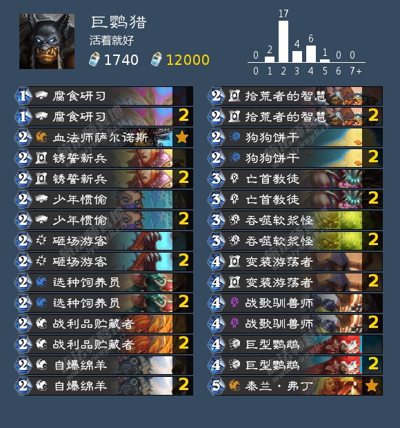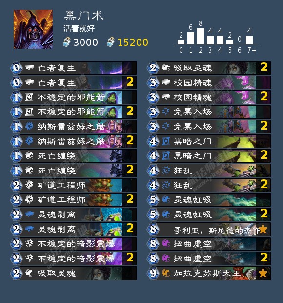 ps:触发效果的亡语怪就下掉,换成新的低费亡语卡,记忆不好就用纸记录已经触发的亡语卡。