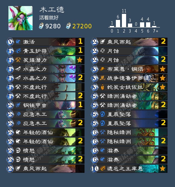 前期就专心做任务就好了,起手留木工,攒到铜须木工就可以开始了,小熊猫最好是回收蛇发女妖,这样就可以多复制一个木工。开刷之前记得洗青玉护符,不然牌库里的抉择法术就不够用了。还有记得泄牌,这样成就进度就会快很多。
