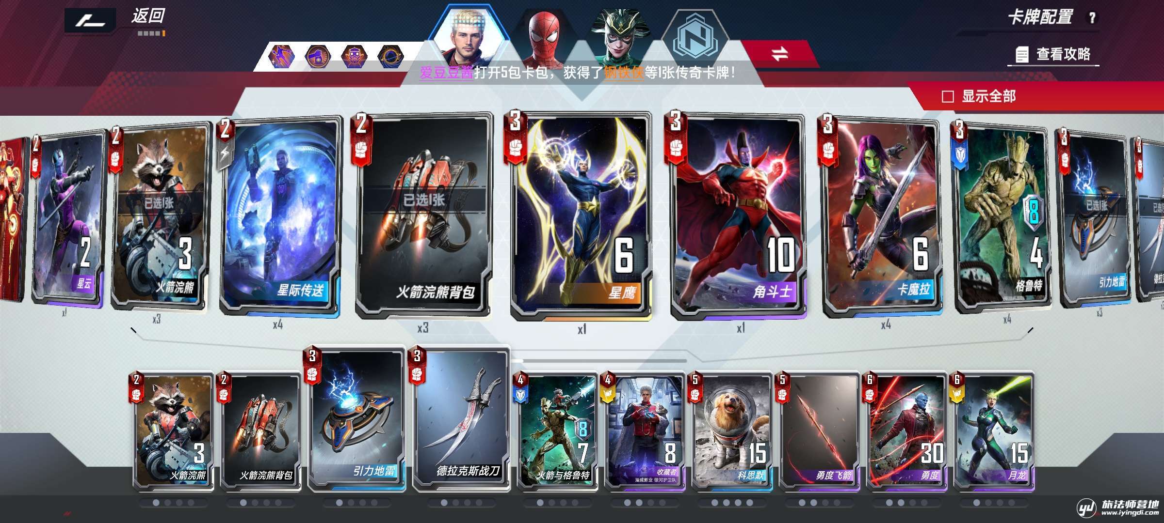 我选择携带的英雄是星爵,蜘蛛侠,和海拉。