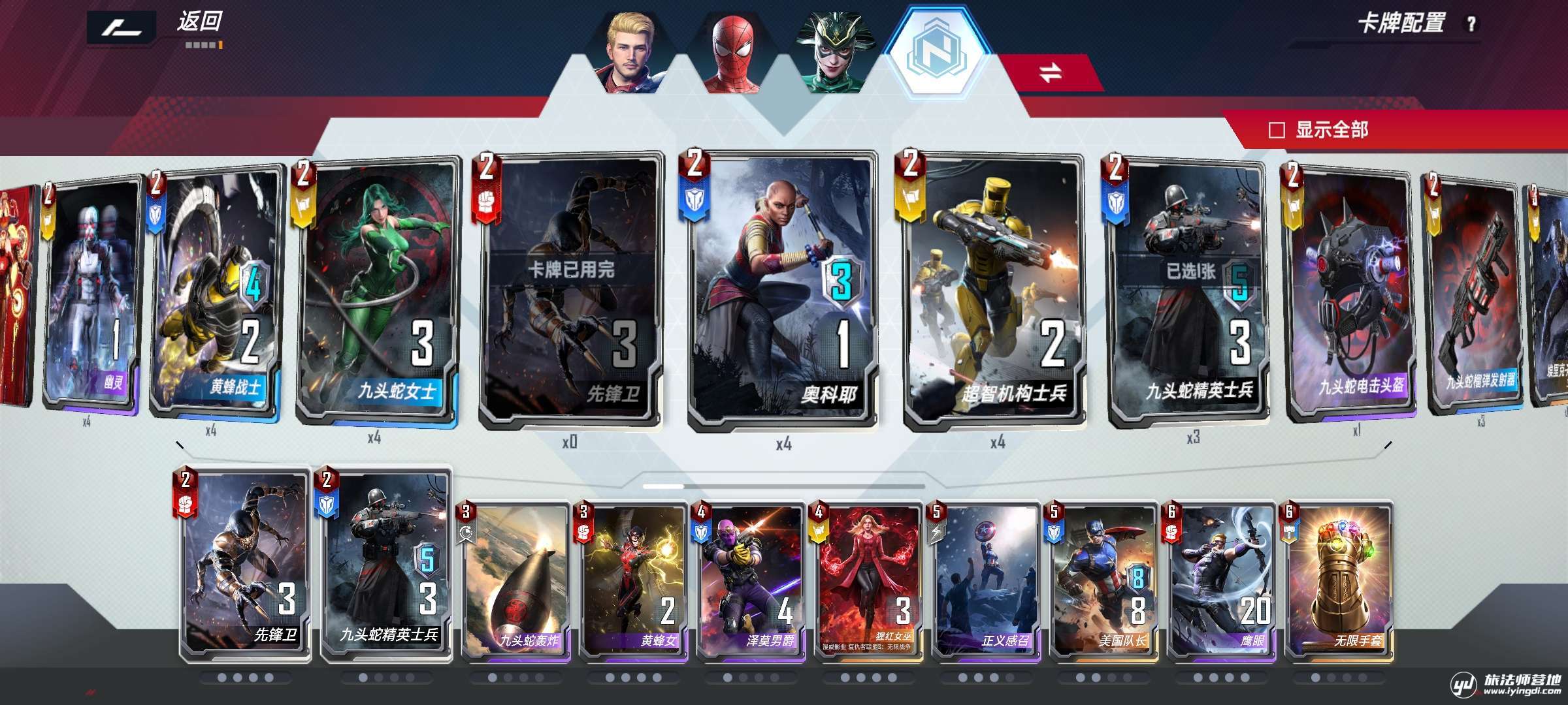 - 而针对洛基,我们选择带上九头蛇轰炸,这张卡的事件优先级高于大宗师的幻想,同时泽莫可以把工具人变成九头蛇士兵,让大宗师无幻想可变。