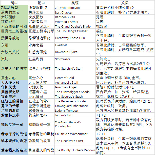 目前明确存在的英雄遗宝有24款,绿装和蓝装各12款。单款遗宝可重复获得。璐璐不掉装备。从普朗克到维克托,掉蓝装的概率逐渐增加。所有英雄的遗宝互通,但可同时装备的数量受限于库存。