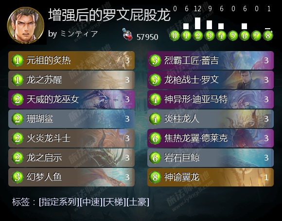 前期优先激奏焦热龙翼·德莱克,第2回合优先使用龙之启示。有多余费用,且牌堆中龙族随从尚未被Buff 2次的情况下,尽快使用元祖的炙热、龙之苏醒、火炎龙斗士或幻梦人鱼。已经Buff至少+0/+2后,可以保留炙热、苏醒,用于解场或抽牌。