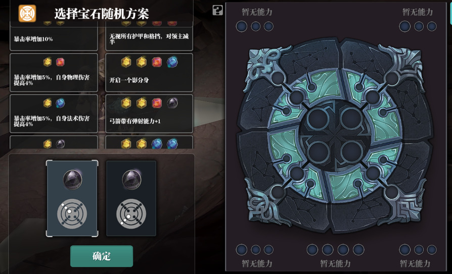 冒险中会遇到祭坛,在祭坛中可以根据指南选择宝石来组成自己想要的特殊能力,宝石有红、黄、蓝、黑4种颜色,不同颜色的宝石也有不同的属性。