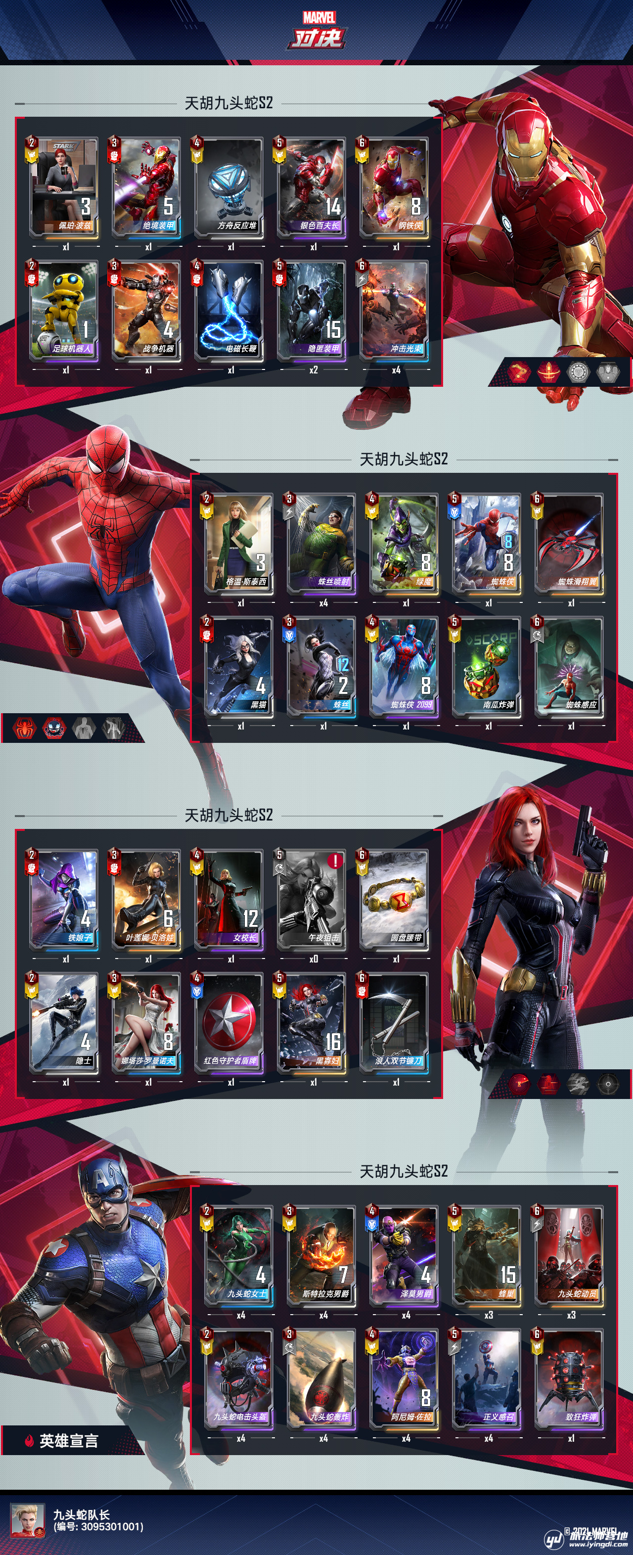 1.如果对面带的英雄里有蜘蛛侠,就把己方有装备的九头蛇角色放在第一位,泽莫男爵放在第二位防蛛丝喷射