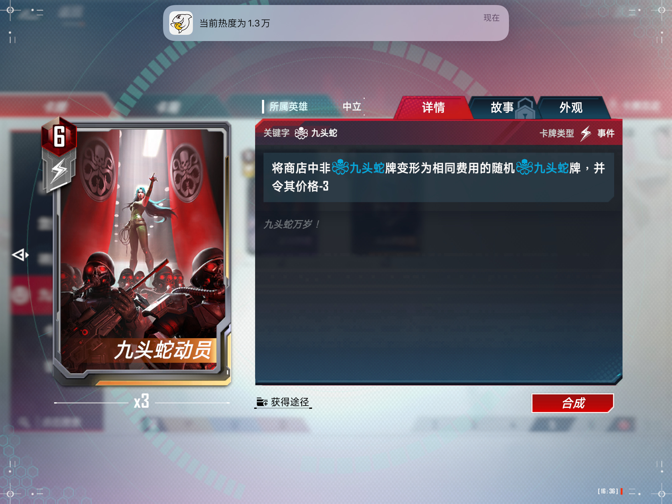 6.九头蛇动员的变形是永久变形,如果商店里有对你特别重要的卡的时候慎用。