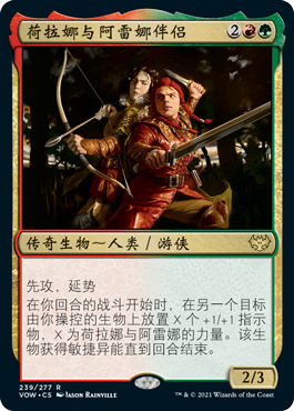荷拉娜与阿雷娜第一次出现是在最初依尼翠环境裡牌的背景叙述上。基于我们完成背景叙述的时间表,设计都会在那些为了背景叙述而创造的角色被创造出来之前完成,所以她们并未出现在系列裡的牌上。我们之后在指挥官传奇裡把这两个角色分别作为具有搭档异能的生物牌。