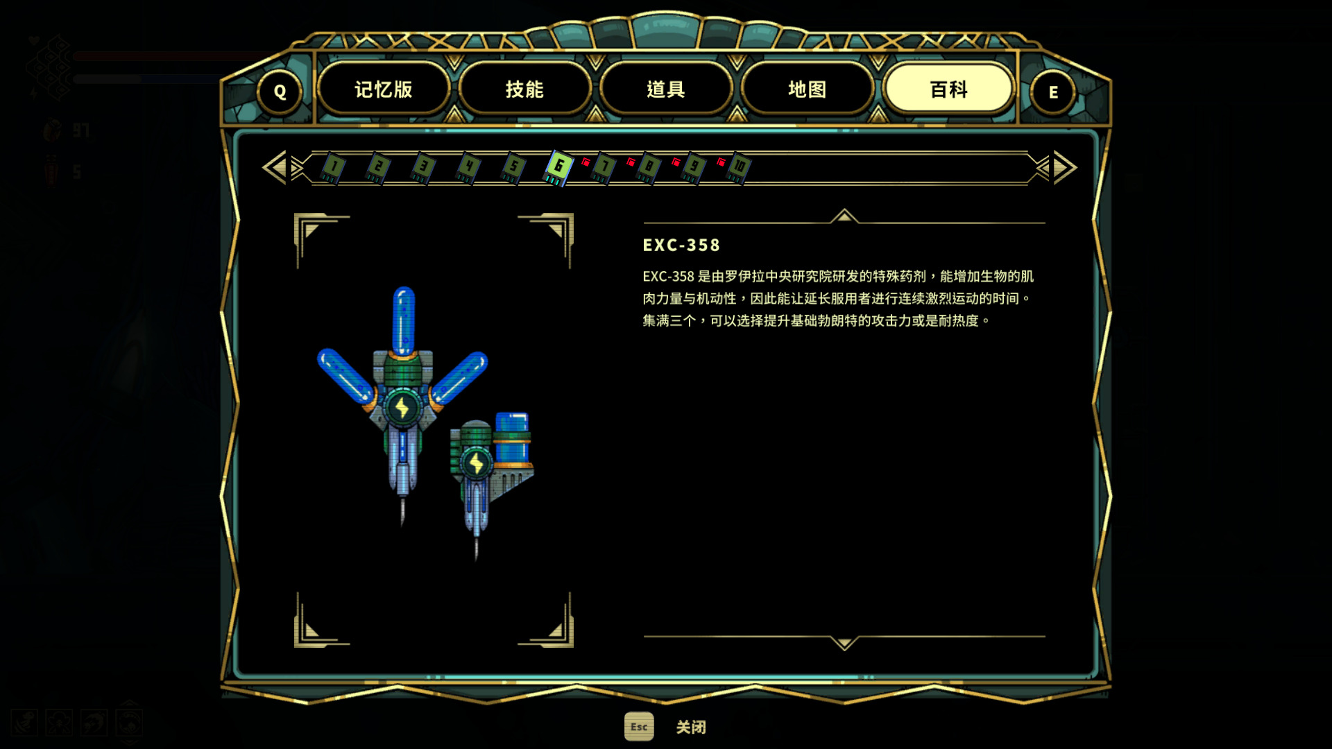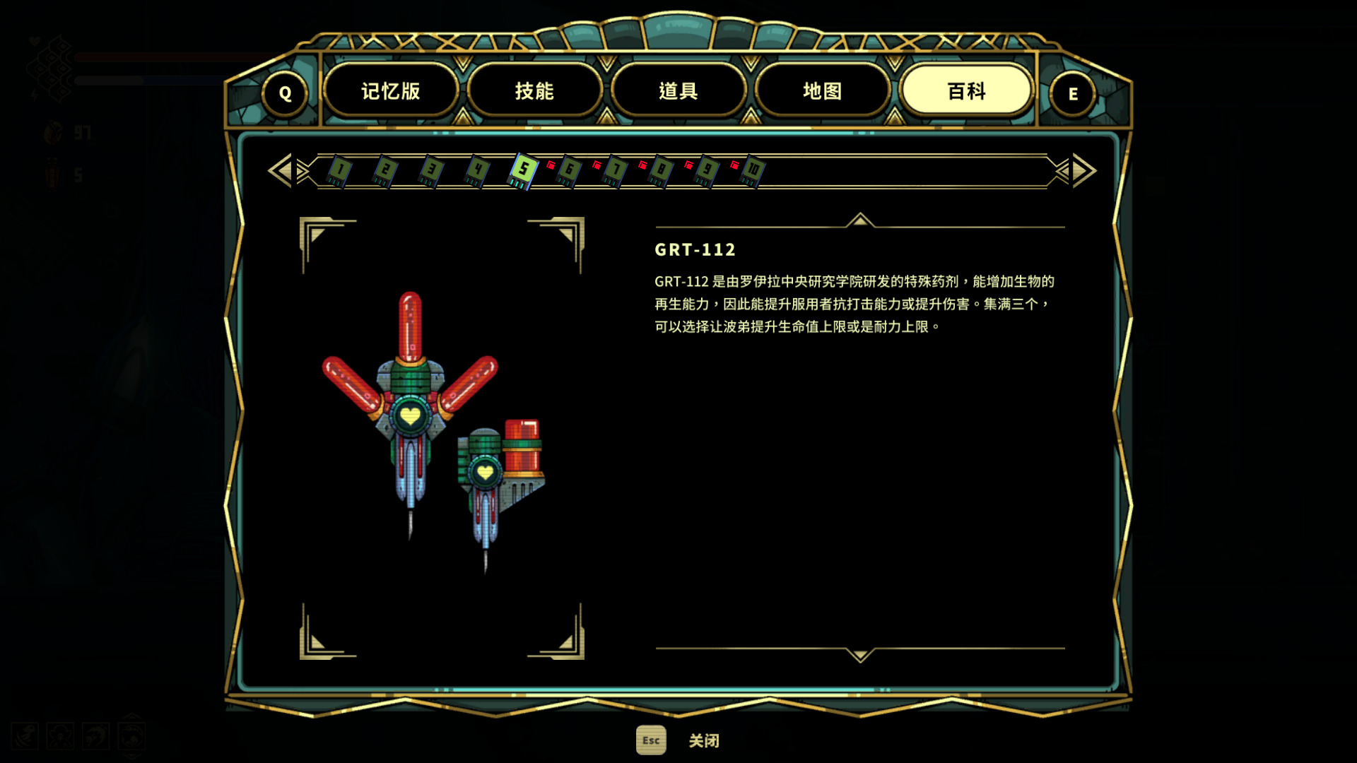 还可以捡到红色药剂和蓝色药剂,红色药剂能提升波弟的生命值上限或是耐力上限,蓝色药剂能提高勃朗特的攻击力亦或是耐热度。