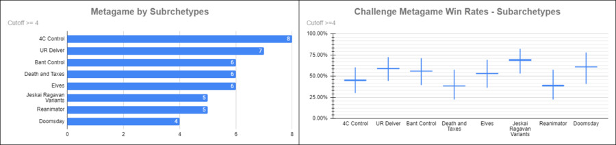 掘密师并不是比赛中最受欢迎的套牌,但它是表现最好的套牌之一。四色控制更受欢迎,但表现不佳。洁斯凯勒格文的平均胜率很高,还有妖精也有不错的表现,我们将在下面的八强中看到