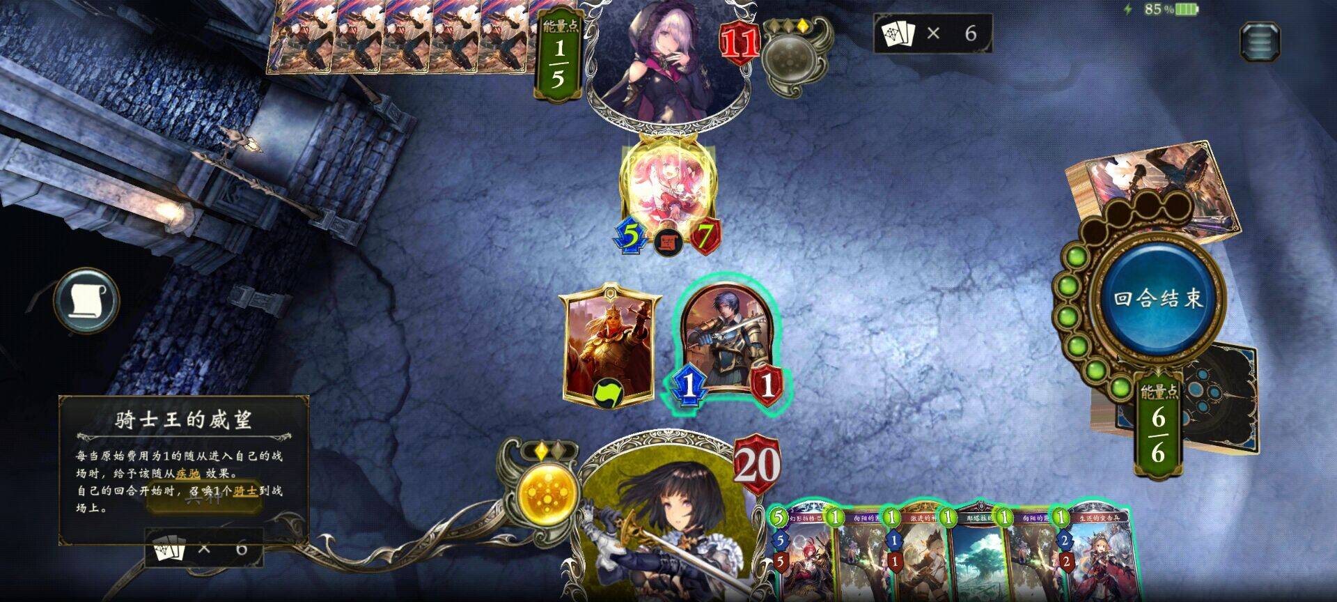 现在没什么常见的前期爆展卡组,实际上进化轮次的压力并不大。即使真的被压制,只要手上有1费也不难做到双解,所以节奏还是挺舒服的。特别是这套1费带的多,前期费用很容易打满,通常来讲场优的是我们才对。骑士王的威望每回合制造的11疾驰投入于补刀后,节奏不仅不显得弱势,反而极其丝滑。