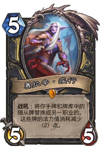 :将你手牌和牌库中的随从牌替换成另一职业的。这些牌的法力值消耗减少(2)点。