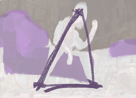 这是上次我提到的那位非常喜欢使用几何图形的画家,飞出的破碎面具,裸露的痛苦面容。背景中残酷的鹰揭示了他的面具是如何离开的。这一切都被一轮金色的环固定了起来,使整个画面的叙事感非常强。下面的手稿也显示了作画者最初的思考:鹰将战士的头盔掀开。在这一瞬间,盔甲、残片、面容分离,而残酷的鹰面对着战士嚎叫着。