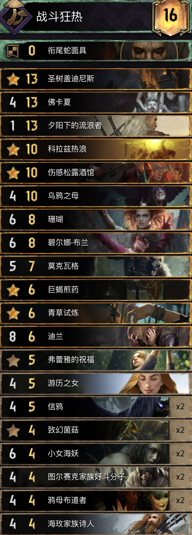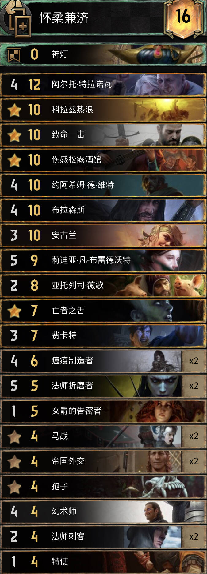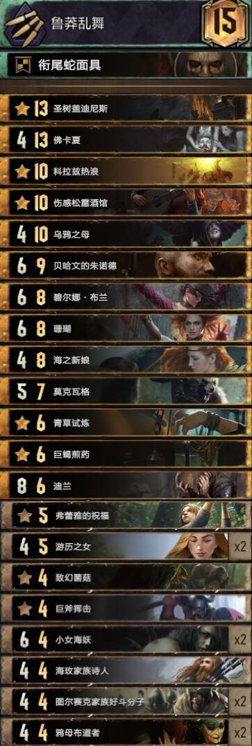 直播间水友称其为诈骗岛,还遇到个诈骗怪兽,R1用破烂弃牌下雨组件假装成破烂岛。R3转变成炼金岛,几把对阵帝国和北方,10卡超长以1点优势碾压帝国。破烂岛本身没有什么点数,以解牌为核心,炼金岛点数大,但是缺控制,也没有什么反制手段。这一套卡组以破烂领袖和弃牌组件作为R12的点数支撑,长局依靠剧情和炼金体系爆点数,短局依靠佛卡夏海之新娘速读剧情。