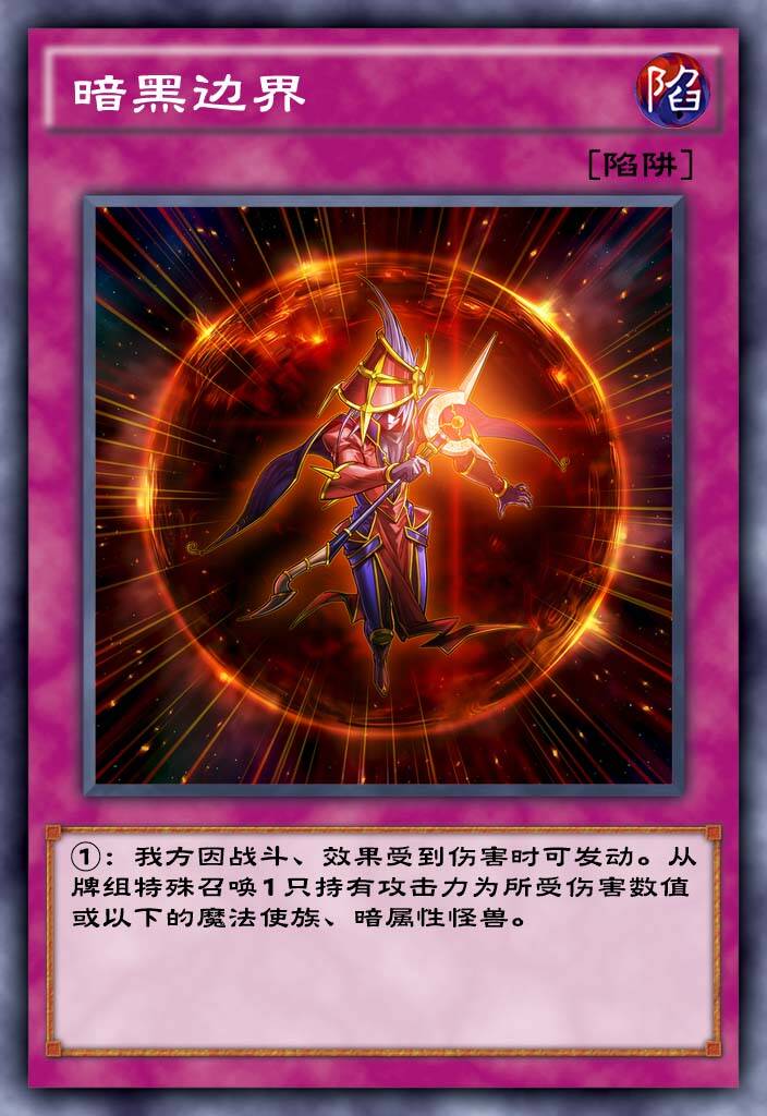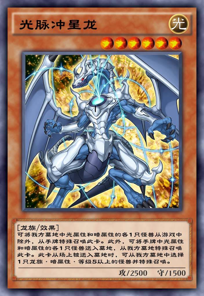 简体中文首发sT里的卡,相似于混沌怪兽的特殊召唤条件,光道混沌类卡组可以带,而且他可以配合黑龙等卡组来使用,可以让龙族卡组提升强度。
