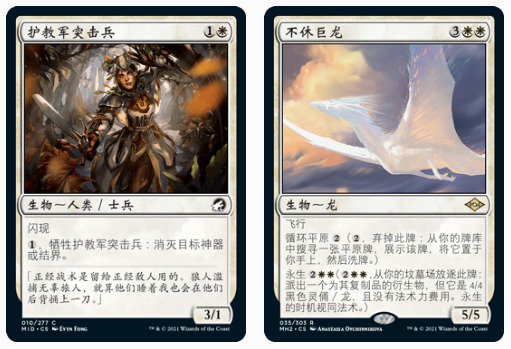 像所有卡组一样, 你总有一些灵活卡位需要补充。在过去几个月里,这些卡位都一直在变,我目前的最终选择是护教军突击兵和两张不休巨龙。护教军突击兵很有可能会随着时间成为固定卡位。我一般并不喜欢那些比较小众的能被侍卫队征召员找出来的牌,但突击兵能给这套牌带来这套牌一直想要的效果。虽然一个真正的白色的复碧智者,但是突击兵的牺牲效应能有效打击最近新流行起来的对DnT备牌迟钝法球,其他一些空境亡灵不能解决的东西比如(克撒传,颅击槌 ,聚鲨台风,全知全能等)也能用它处理。