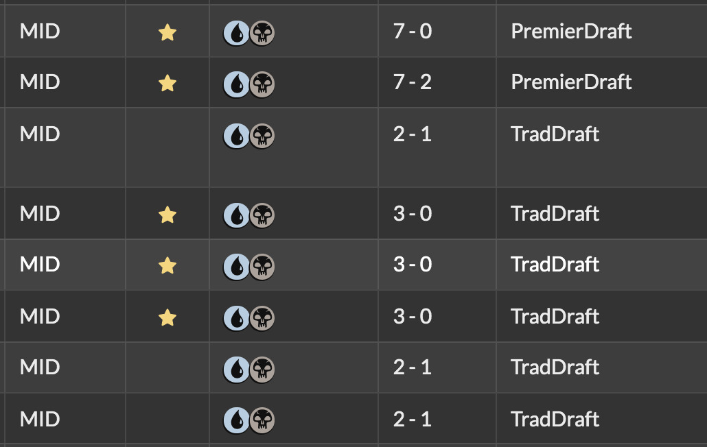 五、善用17lands。除了轮抓过程记录以外,17Lands还包含了大量的统计分析数据,刘Pro会经常研究分析各种数据,与大佬们讨论,提升自己对轮抓的理解,甚至亲自对新系列进行限制评分。刘Pro从不放弃任何一个可能进步的机会。