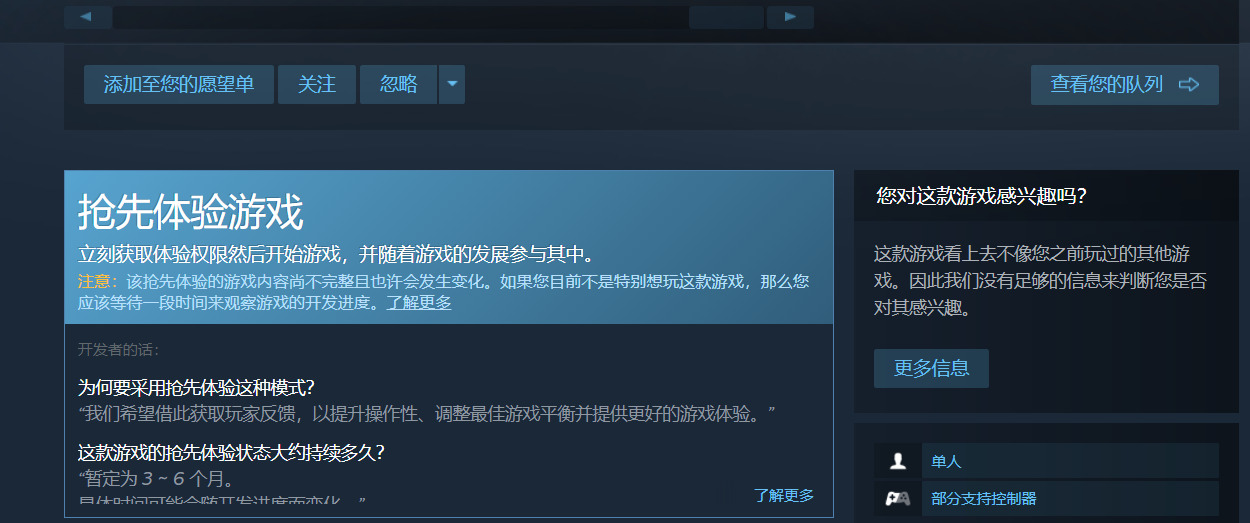 游戏的内容大概在5个小时左右,后期面临着刷刷刷的窘境,说是抢先体验,结果两个月没更新了。