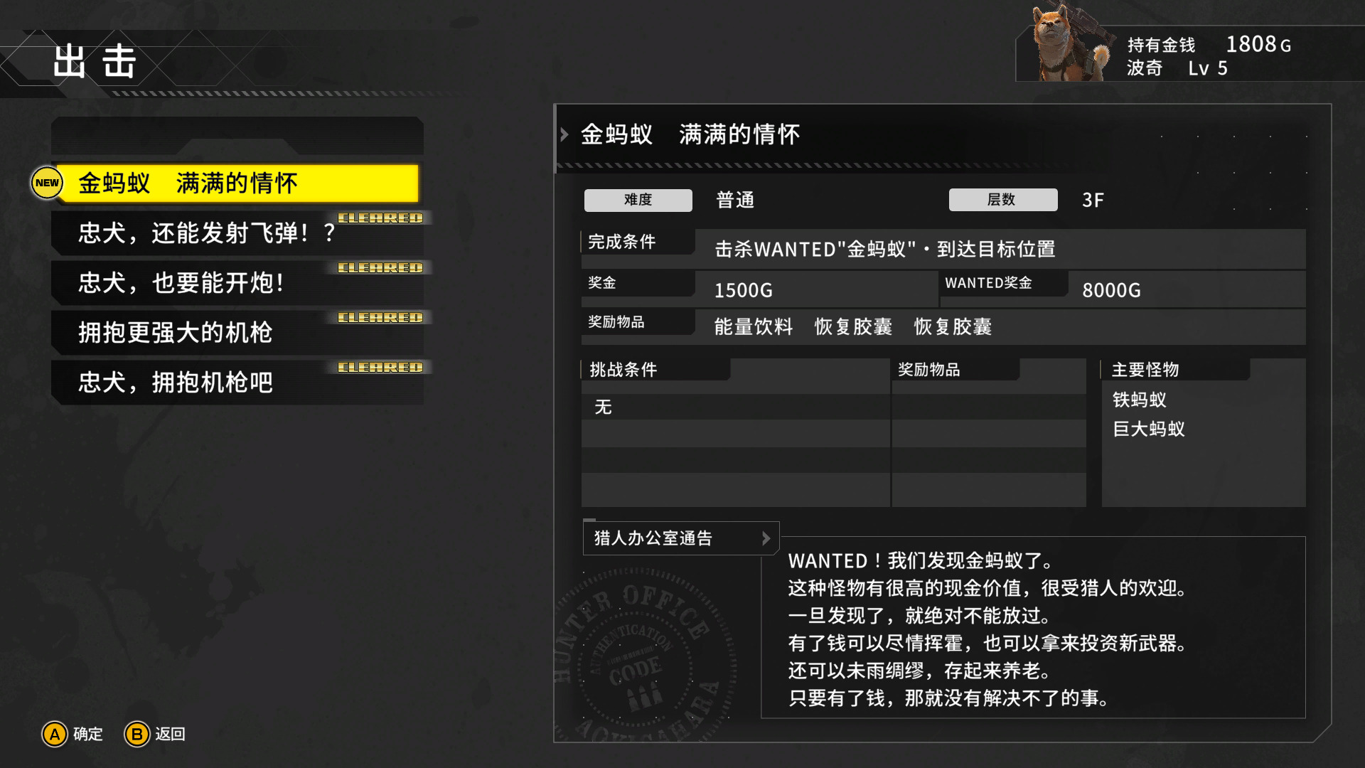 游戏有着较为完善的任务系统,流程清晰,指引明确。即简单的接任务完成任务,有额外目标完成额外目标,获得物资之后就用来更新换代装备,简单到不可思议。(游戏里博士还会吐槽谁给的钱)