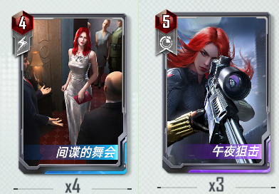 套牌核心也是情报刺杀的由来,只要有情报就能稳定刺杀,穿甲效果很少有角色能够抗住(天胡伊戈)不管是黑寡妇还是雷神美队光谱都是一击必杀,非常好用。实战中经常1张就够用的。
