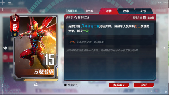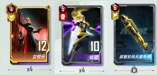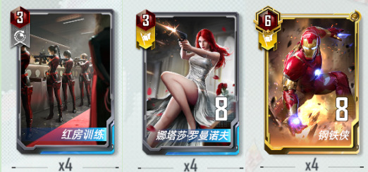 卡组核心,必须有的卡,配合情报1穿3的存在,一般1张就差不多要结束游戏了,情报多的话1张1星1张2星钢铁侠威力极大