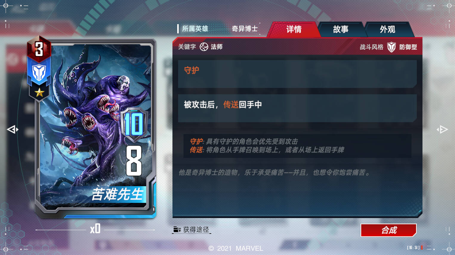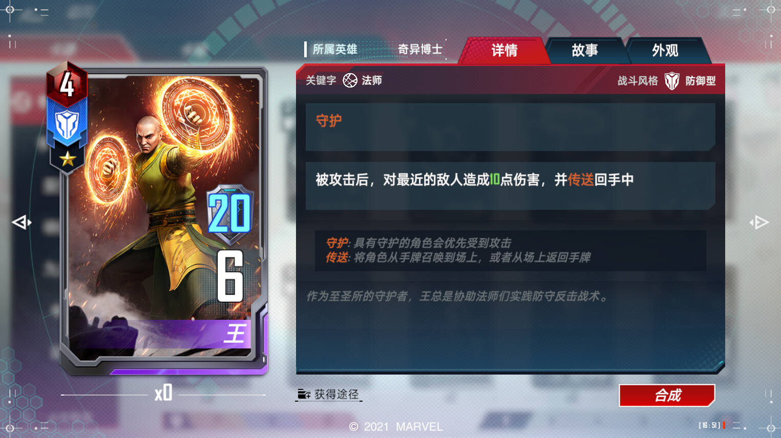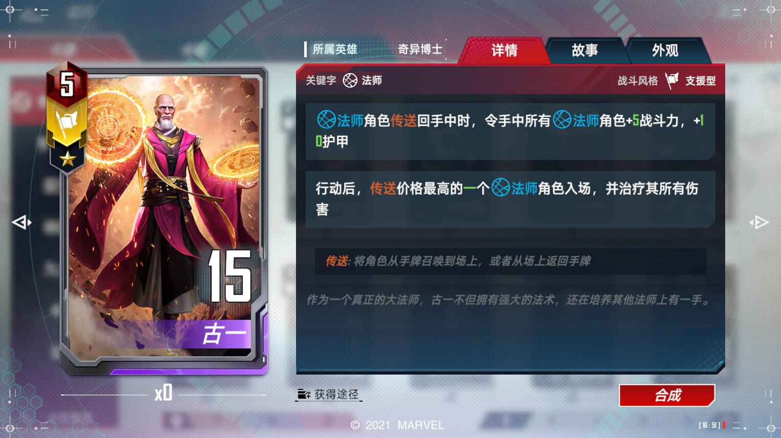古一法师这张卡【法师传送流】里最重要的卡,可以配合不停地复活,并传送手牌中的奇异博士、王等卡牌入场,是整个体系的最核心的卡。其实这张卡应该是橙卡的。