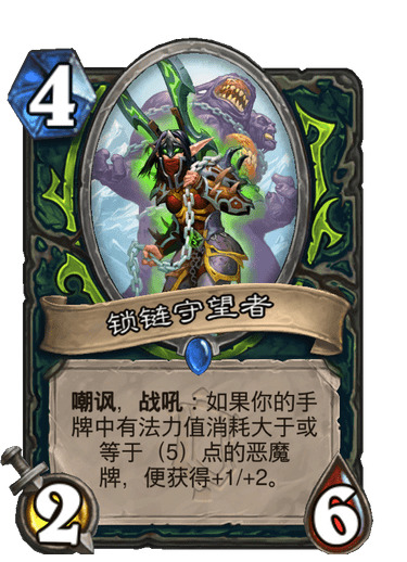 :如果你的手牌中有法力值消耗大于或等于(5)点的恶魔牌,便获得+1/+2。