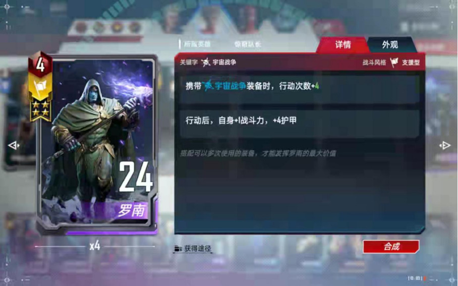 罗南在这个卡组中的重要性在于他可以锁血,只要他行动,自己也可以加护甲,中期只要拿到罗南佩惊队武器,基本上可以稳定血量了。