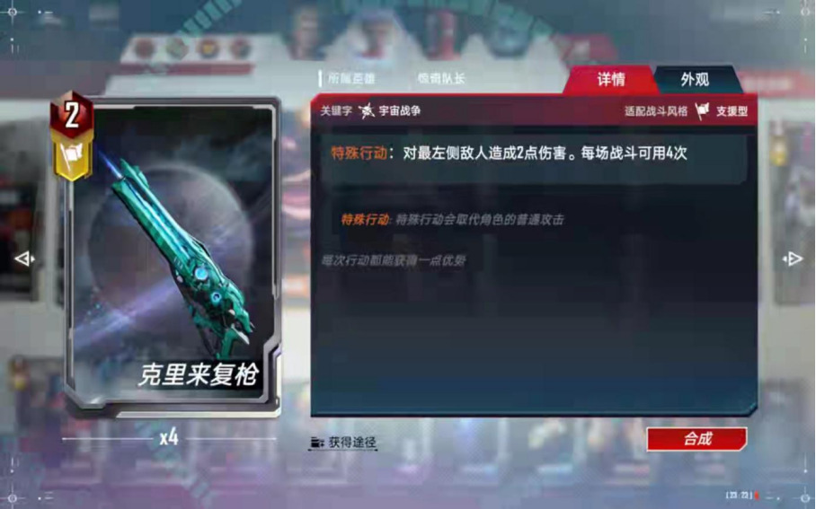 无论如何:惊队三个工具人一定要佩戴具有“宇宙战争”关键字的武器。